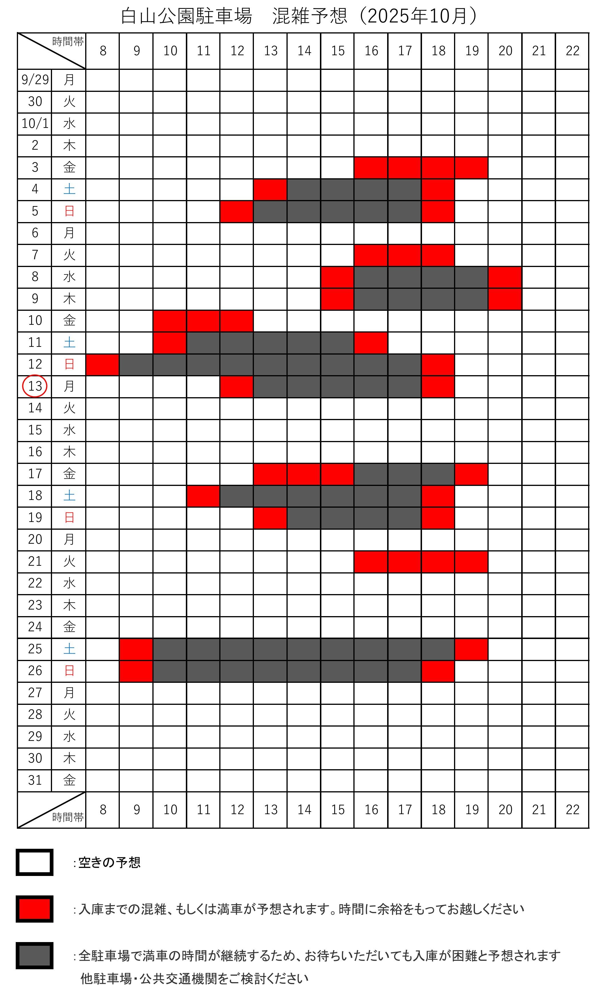 2025年10月の混雑予想です(9/29更新)