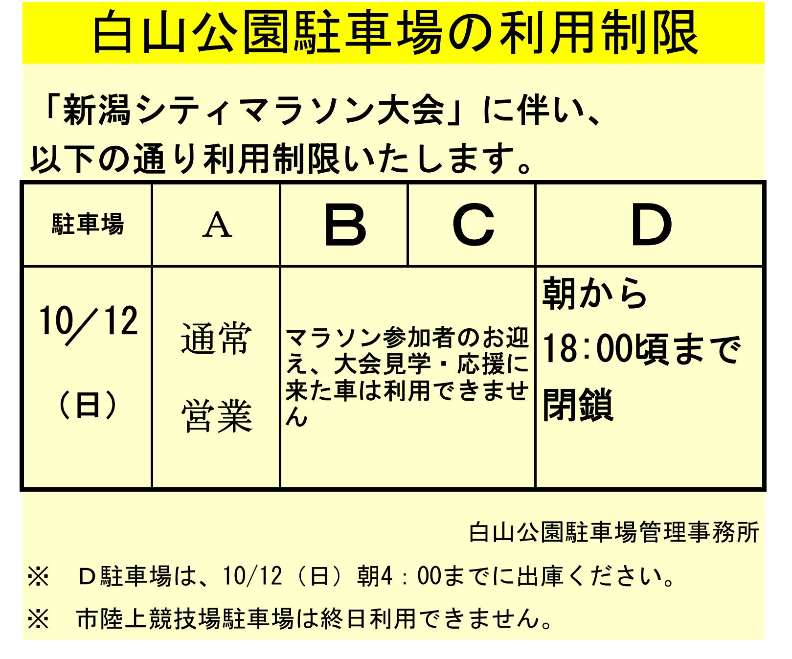 令和7年10月12日(日)は「新潟シティマラソン大会」に伴い、下記のとおり利用制限します。