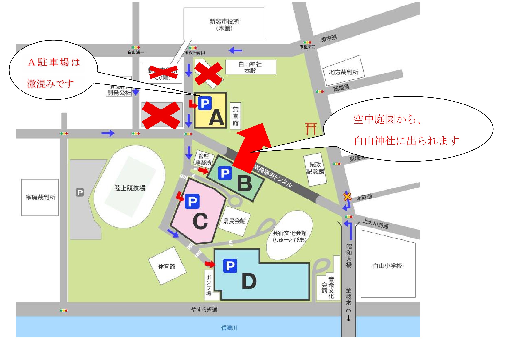 白山神社(二年参り・初詣)に来られるお客様は、B・Ⅽ・Ⅾに駐車することをお勧めします